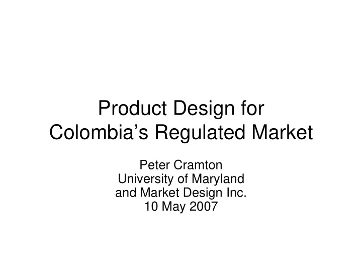 Product Design for Colombia’s Regulated Market Peter Cramton University of Maryland and Market Design Inc. 10 May 2007