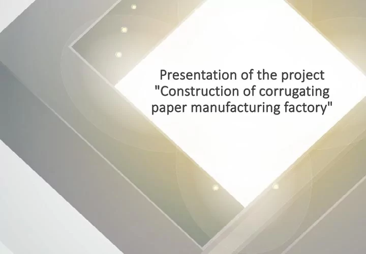 PROJECT BASIS: Construction of a paper mill for the production of paper for corrugating from recycled raw materials with a capacity of 150 tons per day. COMPANY NAME: Naberezhnochelninskaya KBF LLC,registered on 01.04.2018. PROJECT IMPLEMENTATION PLACE: Naberezhnye Chelny, Prompark “ Razvitie" VOLUME OF NECESSARY INVESTMENTS: 311 million rubles PROJECTED NET PROFIT : from 86 to 213 million rubles per year PAYBACK PERIOD: 29-30 months EXPECTED SALES PROFITABILITY: 23.9%