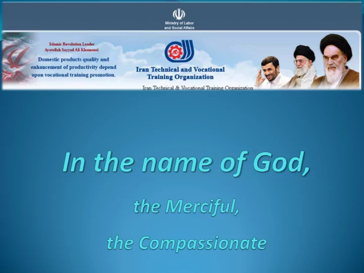 First Phase accomplished The development of online courses: the preparation, establishment and categorization of the contents of 14 disciplines in the area of technical and vocational training in Persian. Providing the applicants with self-guided services, namely self-training and self-assessment.