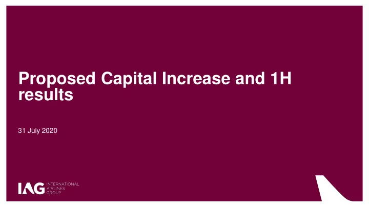 Agenda Willie Walsh IAG CEO 1. Executive summary 2. Successful track record Willie Walsh IAG CEO 3. First half 2020 results Steve Gunning IAG CFO 4. Response to COVID-19 Steve Gunning IAG CFO Luis Gallego IAG CEO Designate 5. Positioning IAG for the future Steve Gunning IAG CFO 6. Proposed Capital Increase 7. Conclusions Willie Walsh IAG CEO 3