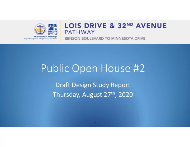 Public Open House #2 Draft Design Study Report Thursday, August 27 th , 2020 1