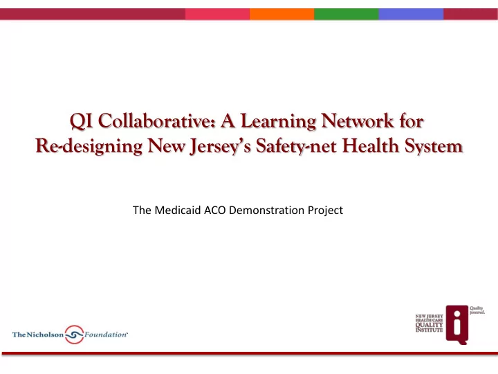 QI Collaborative: A Learning Network for Re- designing New Jersey’s Safety -net Health System The Medicaid ACO Demonstration Project
