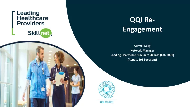 QQI Re- Engagement Carmel Kelly Network Manager Leading Healthcare Providers Skillnet (Est. 2008) (August 2016-present)
