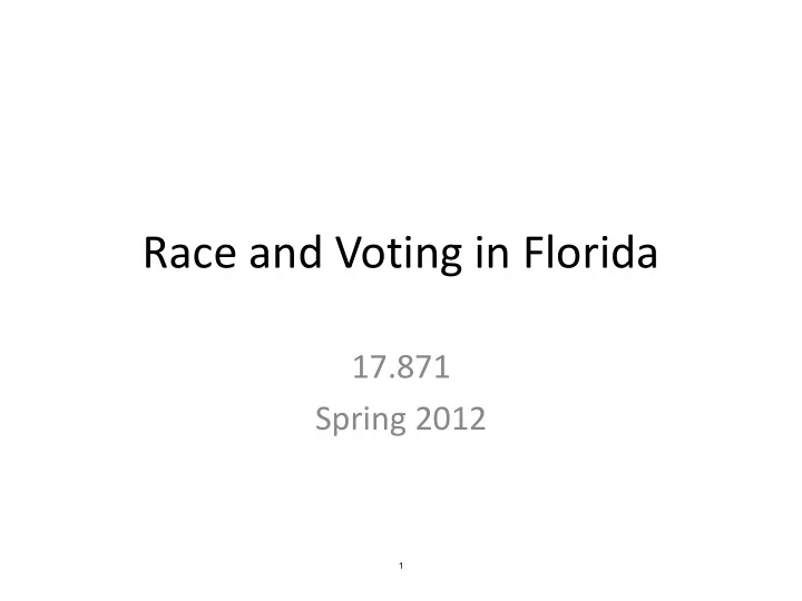 Race and Voting in Florida 17.871 Spring 2012 1