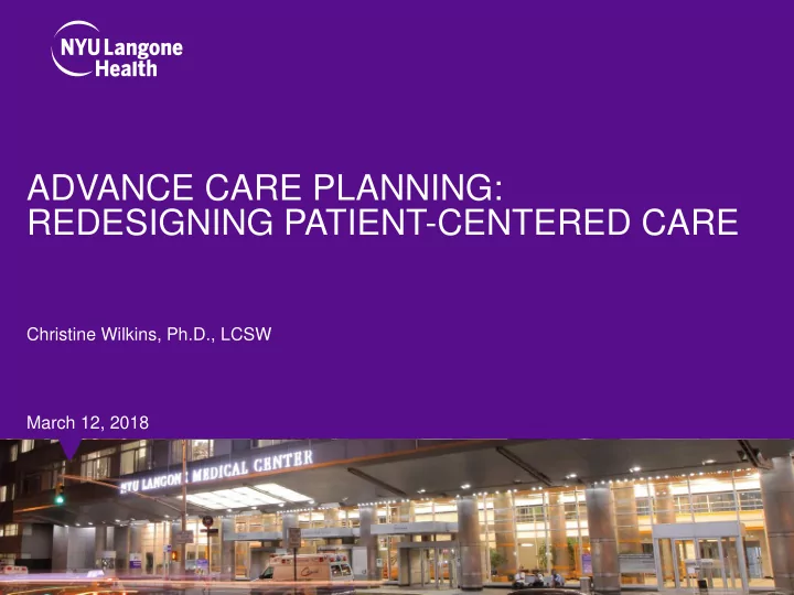 ADVANCE CARE PLANNING: REDESIGNING PATIENT-CENTERED CARE Christine Wilkins, Ph.D., LCSW March 12, 2018