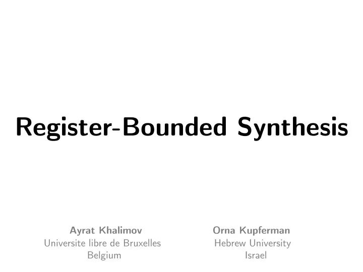 Register-Bounded Synthesis Ayrat Khalimov Orna Kupferman Universite libre de Bruxelles Hebrew University Belgium Israel