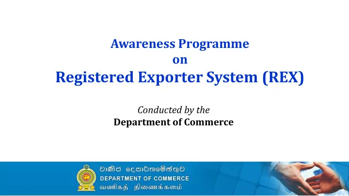 Awareness Programme on Registered Exporter System (REX) Conducted by the Department of Commerce