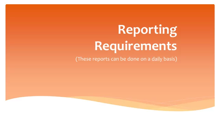 REPORTING REQUIREMENTS (These reports are done on a monthly basis)