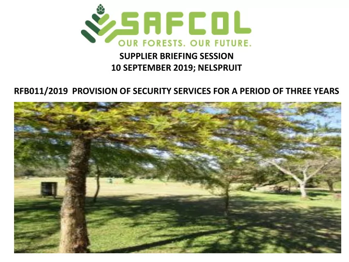 SUPPLIER BRIEFING SESSION 10 SEPTEMBER 2019; NELSPRUIT RFB011/2019 PROVISION OF SECURITY SERVICES FOR A PERIOD OF THREE YEARS