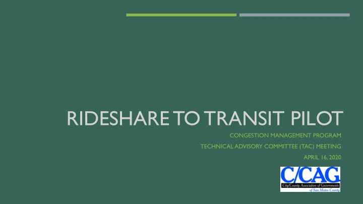 RIDESHARE TO TRANSIT PILOT CONGESTION MANAGEMENT PROGRAM TECHNICAL ADVISORY COMMITTEE (TAC) MEETING APRIL 16, 2020 RIDESHARE TO TRANSIT
