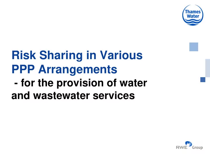 Content � Introduction – what does PPP offer? � Risk register of the water industry � Generic PPP models and risk sharing � Conclusion 2 Thames Water, RWE Group 08/03/2005