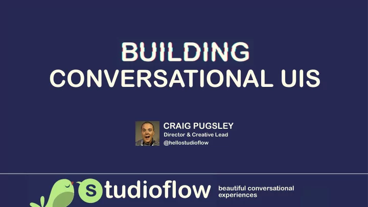 DESIGNING CONVERSATIONAL UIS CRAIG PUGSLEY Director & Creative Lead @hellostudioflow s tudioflow beautiful conversational experiences