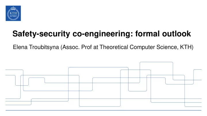 Safety-security co-engineering: formal outlook Elena Troubitsyna (Assoc. Prof at Theoretical Computer Science, KTH)