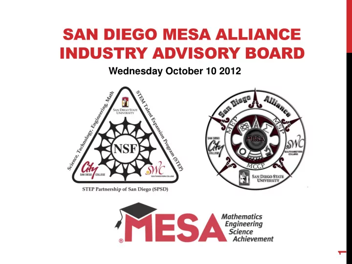 SAN DIEGO MESA ALLIANCE INDUSTRY ADVISORY BOARD Wednesday October 10 2012 1