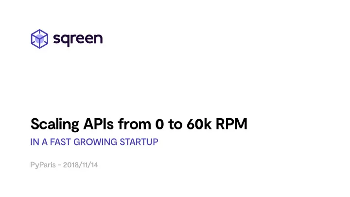 Scaling APIs from 0 to 60k RPM IN A FAST GROWING STARTUP PyParis - 2018/11/14