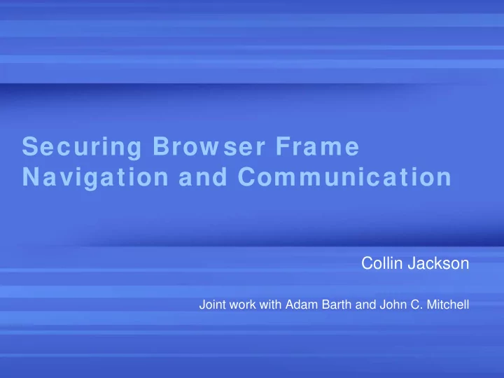 Securing Brow ser Frame Navigation and Communication Collin Jackson Joint work with Adam Barth and John C. Mitchell