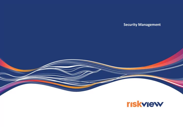 Security in RiskView The Security functionality allows Users with Admin Group Permissions to: – Setup and maintain the Users that can access the system – Setup and maintain the Registers that separate the risk data into logical groups – Setup and maintain the way in which functionality is bundled together – Setup and maintain the Users that can access the functionality in specific Registers