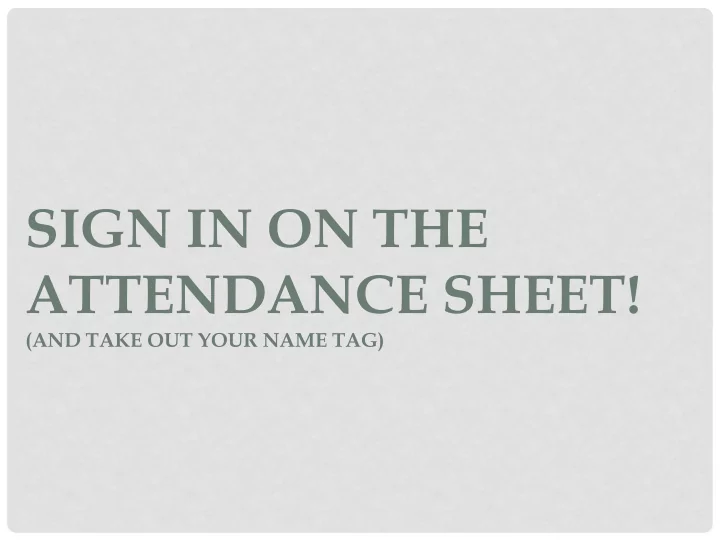 SIGN IN ON THE ATTENDANCE SHEET! (AND TAKE OUT YOUR NAME TAG)