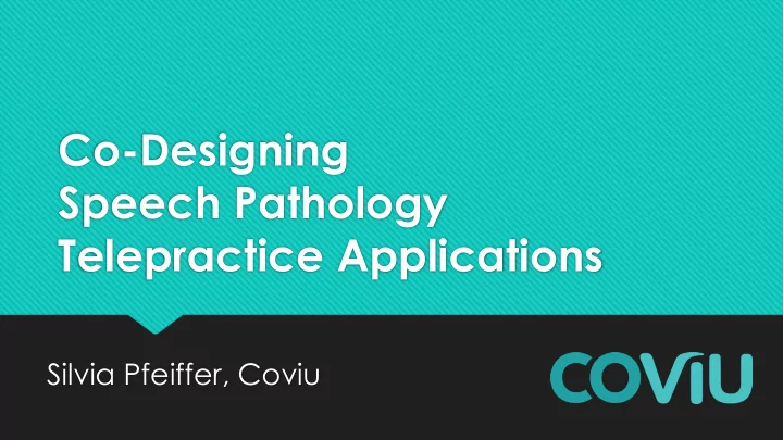 Co-Designing Speech Pathology Telepractice Applications Silvia Pfeiffer, Coviu