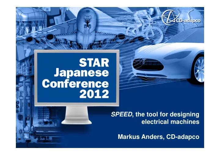 SPEED , the tool for designing electrical machines Markus Anders, CD-adapco