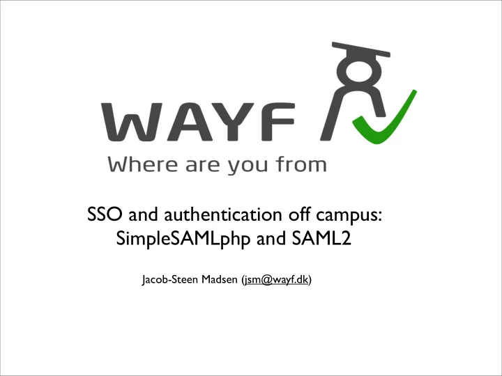 SSO and authentication off campus: SimpleSAMLphp and SAML2 Jacob-Steen Madsen (jsm@wayf.dk)