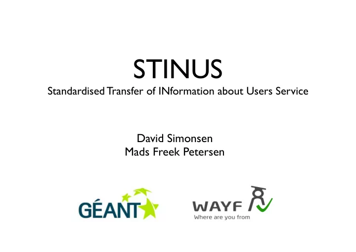 STINUS Standardised Transfer of INformation about Users Service David Simonsen Mads Freek Petersen
