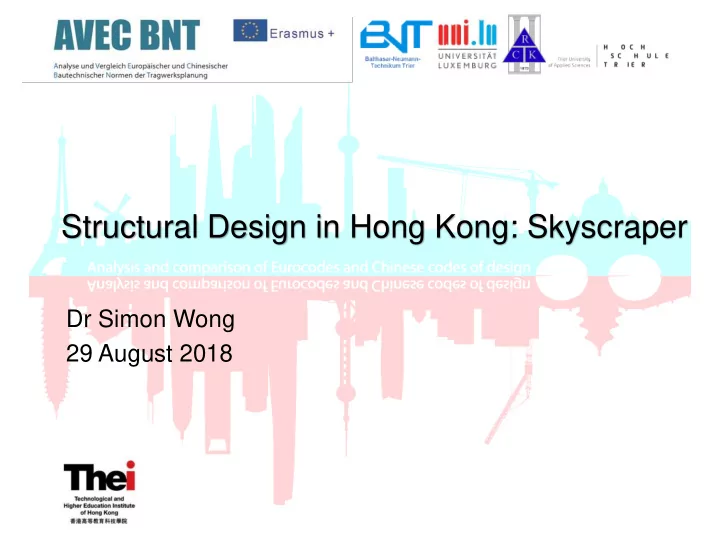 Structural Design in Hong Kong: Skyscraper Dr Simon Wong 29 August 2018
