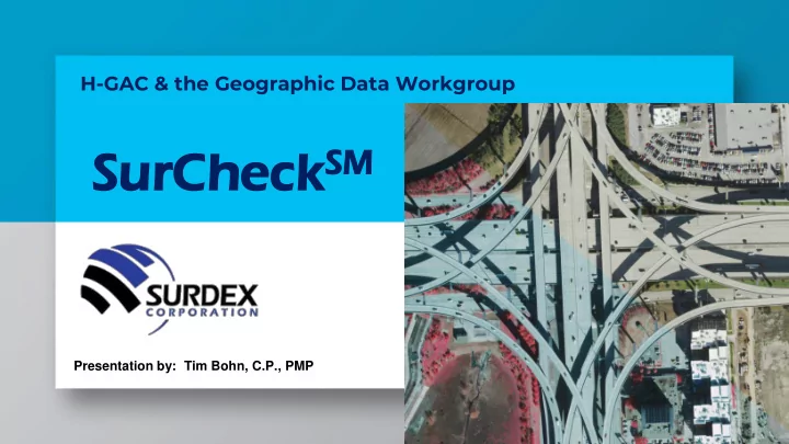 H-GAC & the Geographic Data Workgroup Su SurC rCheck heck SM SM Presentation by: Tim Bohn, C.P., PMP
