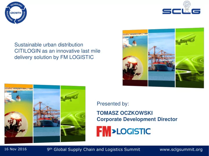 Sustainable urban distribution CITILOGIN as an innovative last mile delivery solution by FM LOGISTIC Presented by: TOMASZ OCZKOWSKI Corporate Development Director 9 th Global Supply Chain and Logistics Summit 16 Nov 2016 www.sclgsummit.org