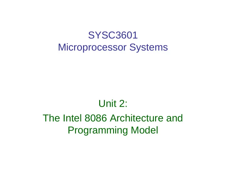 SYSC3601 Microprocessor Systems Unit 2: The Intel 8086 Architecture and Programming Model