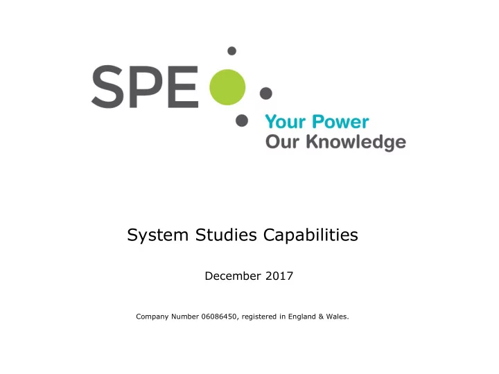 System Studies Capabilities December 2017 Company Number 06086450, registered in England & Wales.