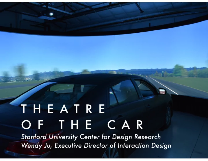 T H E A T R E O F T H E C A R Stanford University Center for Design Research Wendy Ju, Executive Director of Interaction Design