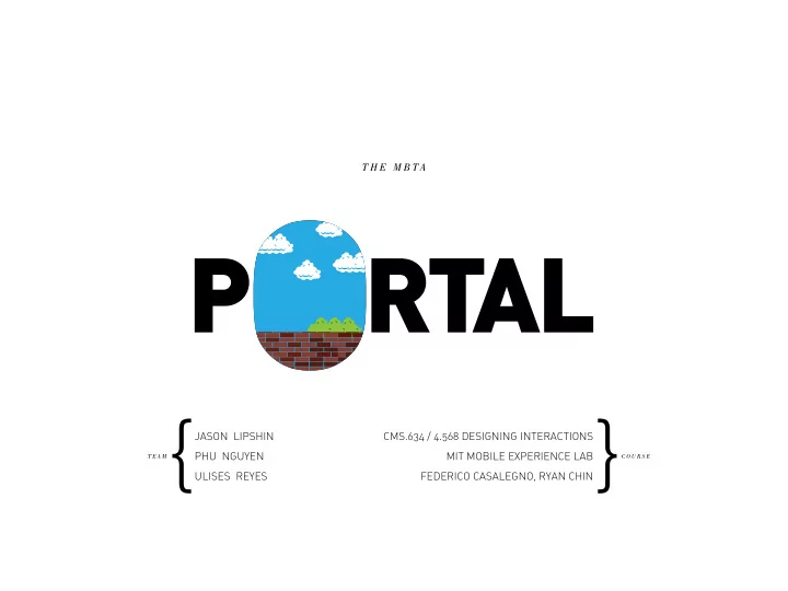 T H E M B TA CMS.634 / 4.568 DESIGNING INTERACTIONS JASON LIPSHIN PHU NGUYEN MIT MOBILE EXPERIENCE LAB T E A M C O U R S E ULISES REYES FEDERICO CASALEGNO, RYAN CHIN