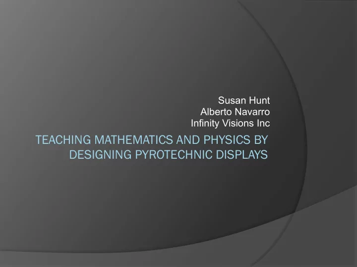 Susan Hunt Alberto Navarro Infinity Visions Inc TEACHING MATHEMATICS AND PHYSICS BY DESIGNING PYROTECHNIC DISPLAYS