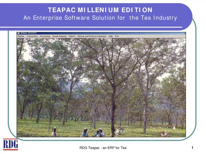 76 Sectional History ( Screen # 1 ) RDG Teapac - an ERP for Tea