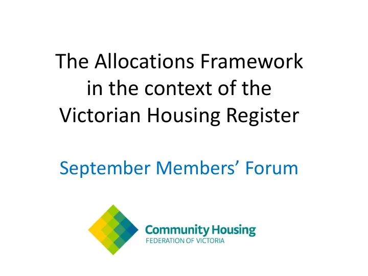 The Allocations Framework in the context of the Victorian Housing Register September Members’ Forum