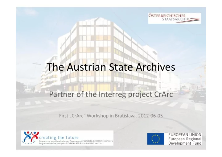 The Austrian State Archives Partner of the Interreg project CrArc First „CrArc“ Workshop in Bratislava, 2012-06-05