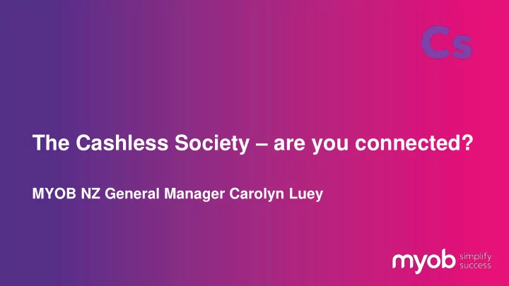 The Cashless Society – are you connected? MYOB NZ General Manager Carolyn Luey 1