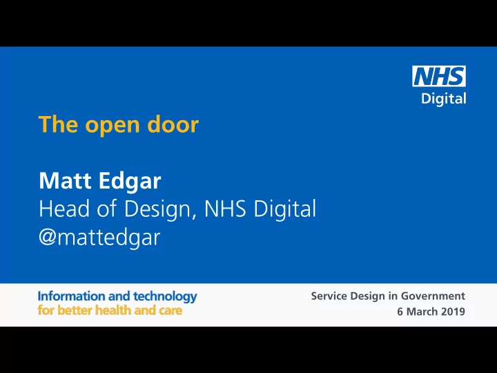 The open door Matt Edgar Head of Design, NHS Digital @mattedgar Service Design in Government 6 March 2019