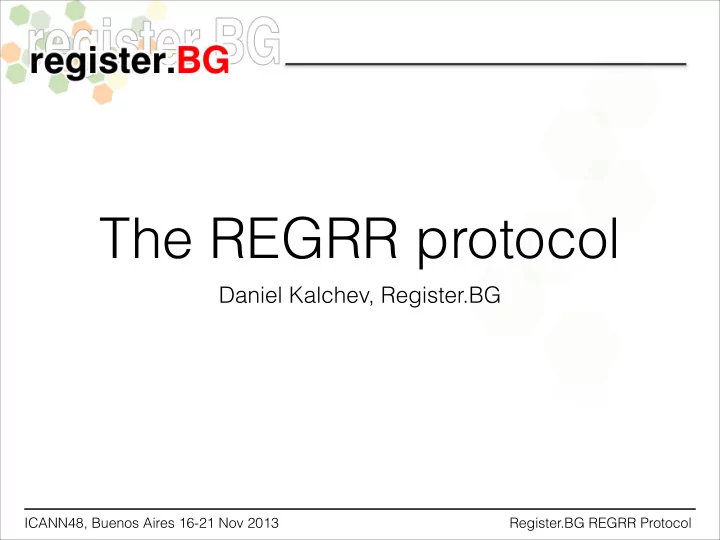 The REGRR protocol Daniel Kalchev, Register.BG ICANN48, Buenos Aires 16-21 Nov 2013 Register.BG REGRR Protocol