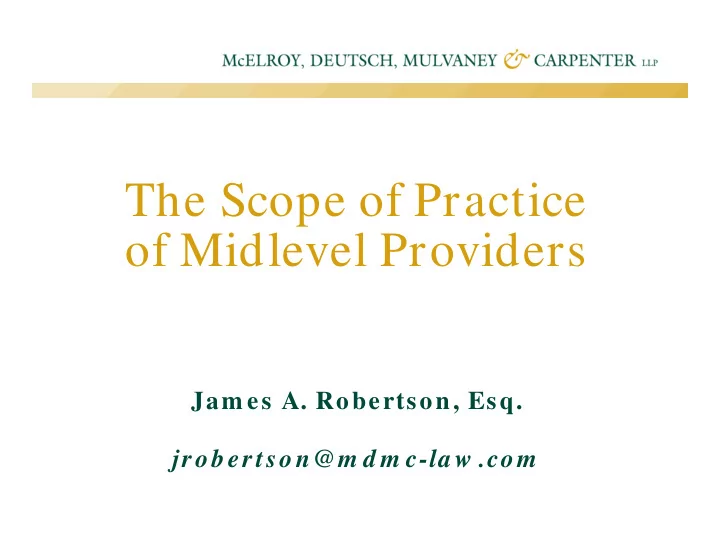 The Scope of Practice of Midlevel Providers Jam es A. Robertson, Esq. jrobertson@m d m c-la w .com