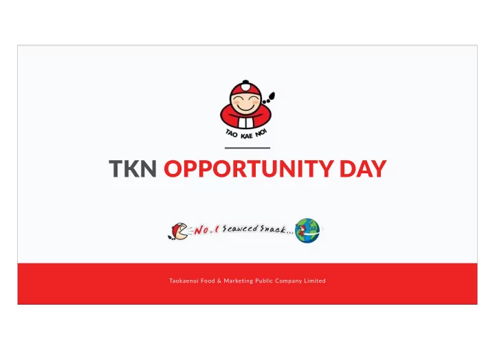 TKN OPPORTUNITY DAY Taokaenoi Food & Marketing Public Company Limited