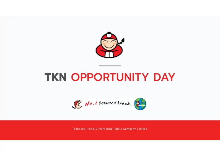 TKN OPPORTUNITY DAY Quarter 4 /18 Taokaenoi Food & Marketing Public Company Limited