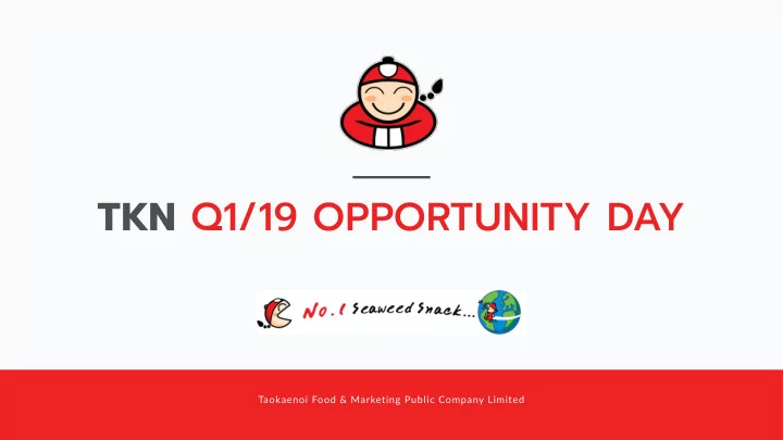 TKN Q1/19 OPPORTUNITY DAY Quarter 4 /18 Taokaenoi Food & Marketing Public Company Limited