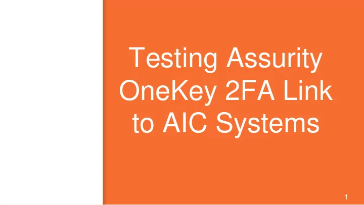 Testing Assurity OneKey 2FA Link to AIC Systems 1