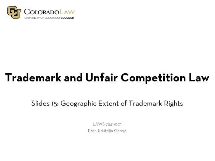 Trademark and Unfair Competition Law Slides 15: Geographic Extent of Trademark Rights LAWS 7341-001 Prof. Kristelia García