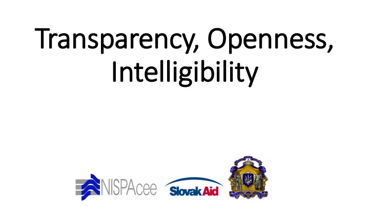 Purpose and Outputs Purpose: To provide knowledge about the key concepts of transparency, openness and intelligibility. The module focuses on designing new transparency, control and accountability arrangements and identifying their weaknesses and strengths. Outputs: • Understanding of the difficulty and importance of defining transparency, openness, intelligibility, accountability and corruption. • Awareness of the ways in which to measure transparency, openness, intelligibility and corruption. • Understanding of the causes and impact of lack of transparency, openness, intelligibility. • Ability to fight corruption through increase of transparency, openness and intelligibility. • Knowledge of anti-corruption local reforms - from Slovakia and abroad.