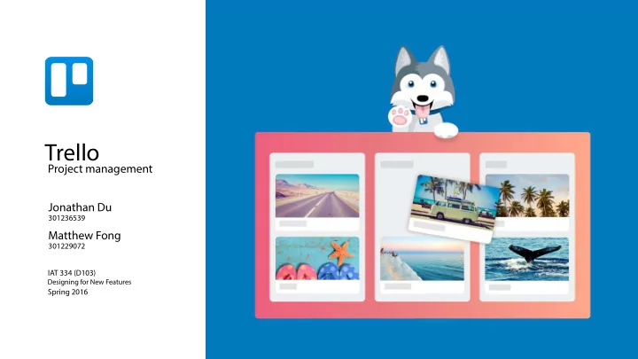 Trello Project management Jonathan Du 301236539 Matthew Fongman 301229072 IAT 334 (D103) Designing for New Features Preliminary / User research Spring 2016