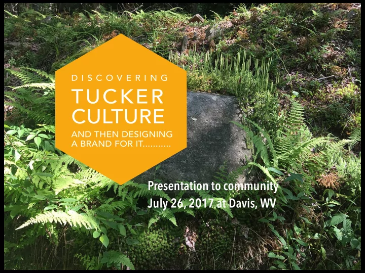 D I S C O V E R I N G TUCKER CULTURE AND THEN DESIGNING A BRAND FOR IT........... Presentation to community July 26, 2017 at Davis, WV