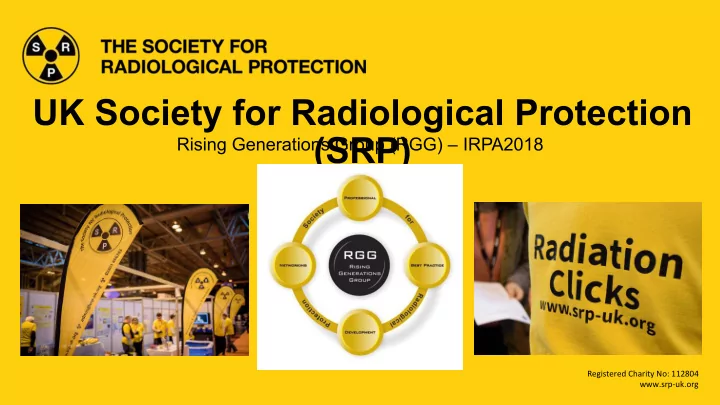 UK Society for Radiological Protection (SRP) Rising Generations Group (RGG) – IRPA2018 Registered)Charity)No:)112804) www.srp9uk.org)